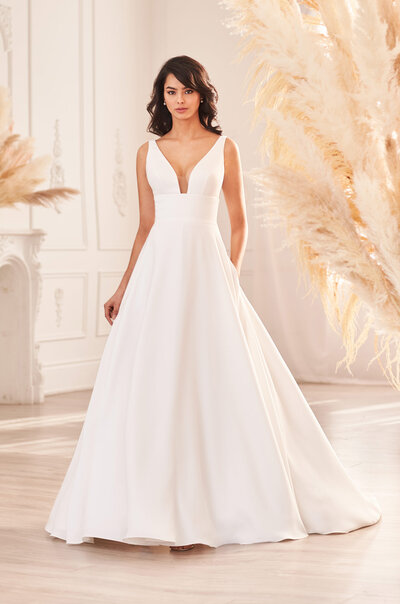 Because all of our dresses are made to order they take anywhere from 7-10 months to come in. We suggest our brides should start looking at wedding dresses about 12 months prior to their wedding date. We always have the option to check if there is something in stock or the option to rush a dress if you have a shorter time frame. This gives the bride ample time in case there are shipping delays.